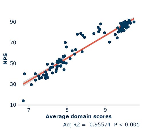 Statistics reveal it. When overall ratings like NPS are less correlated than expected, it signals that key domains may be missing.