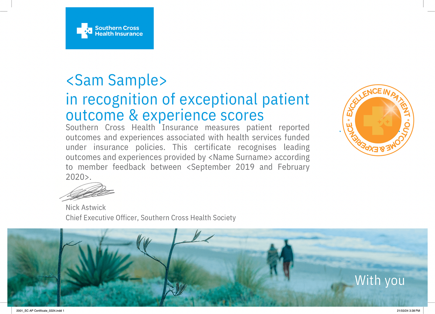 With every certificate awarded, Southern Cross Health Insurance is reinforcing a culture of excellence, appreciation, and continuous improvement – one provider at a time.